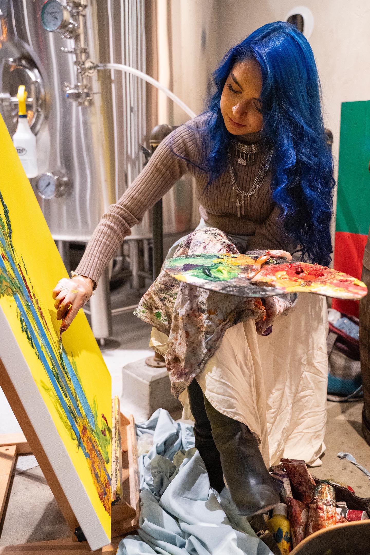 This bright bold beautiful canvas represents the energetic aura that is created when multiple forces of community come together in creation. On Sept 26th, 2023 Turtle Boat and Chef Jeremy Song partnered up with local farms and producers to have their final Pairing Dinner with Dos Luces Brewery. I was brought along to live paint and instead was the one entertained by the wave of flavors and unity around what grounds us the most. More than just food, but a meal. The artistry of what it takes to curate a dinner experience and to taste the outcome of intention.